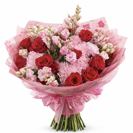 A striking bouquet featuring premium Roses and Plush Hydrangea's complimented with luxury seasonal greenery.