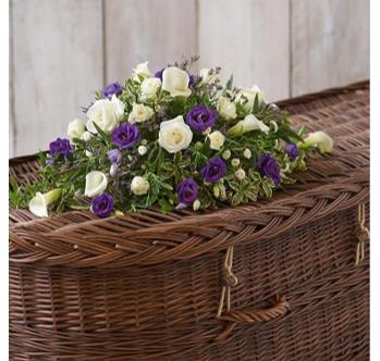 PETITE PURPLE & WHITE CASKET SPRAY  1