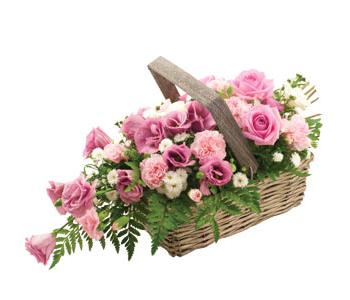 A beautifully mixed pink palette of blooms and foliage in a rustic, traditional-style Trug basket. Stunningly hand-crafted by one of our expert florists.